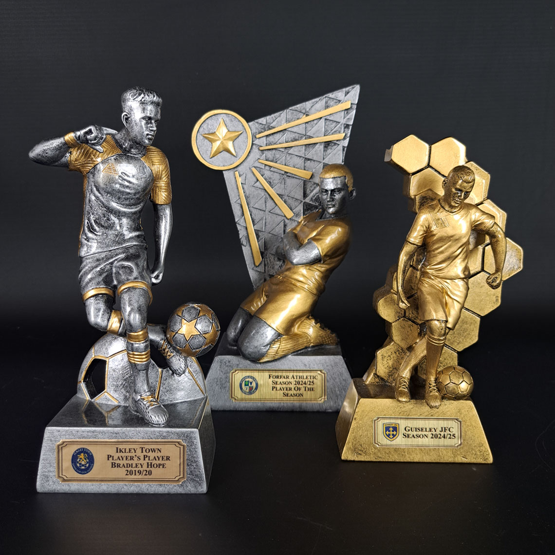 • Resin trophies – They’re durable, stylish and available in a range of designs, including boots, balls and player trophies.